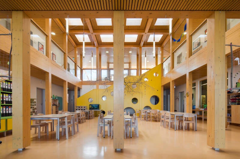 Modulbauweise aus teilinstallierten Holztafelwänden auf Brettstapeldecken
